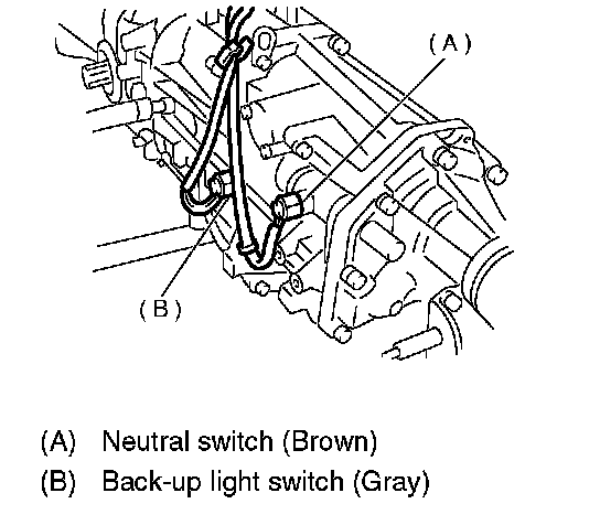 6. Remove the back-up light switch and neutral position switch with harness.