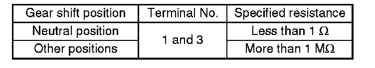3. Measure the resistance between neutral position switch terminals.