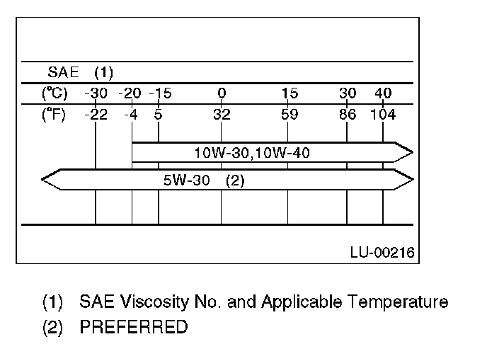 CAUTION: When replenishing oil, it does not matter if the oil to be added is a different brand from that in the engine; however, use oil having the API classification and SAE viscosity No. designated by SUBARU.