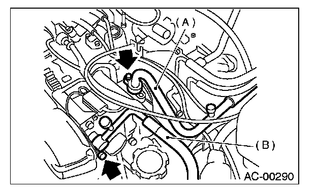 6. Disconnect low-pressure hose (A) and high pressure hose (B).