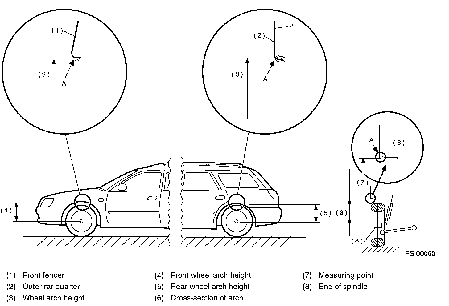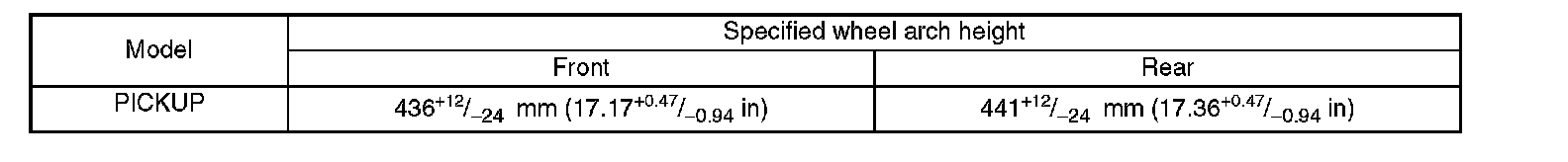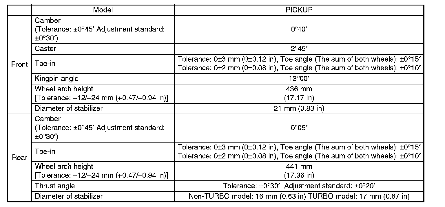 ^ The other items indicated in the specification table cannot be adjusted. If the other items exceed specifications, check suspension parts and connections for deformities; replace with new ones as required.