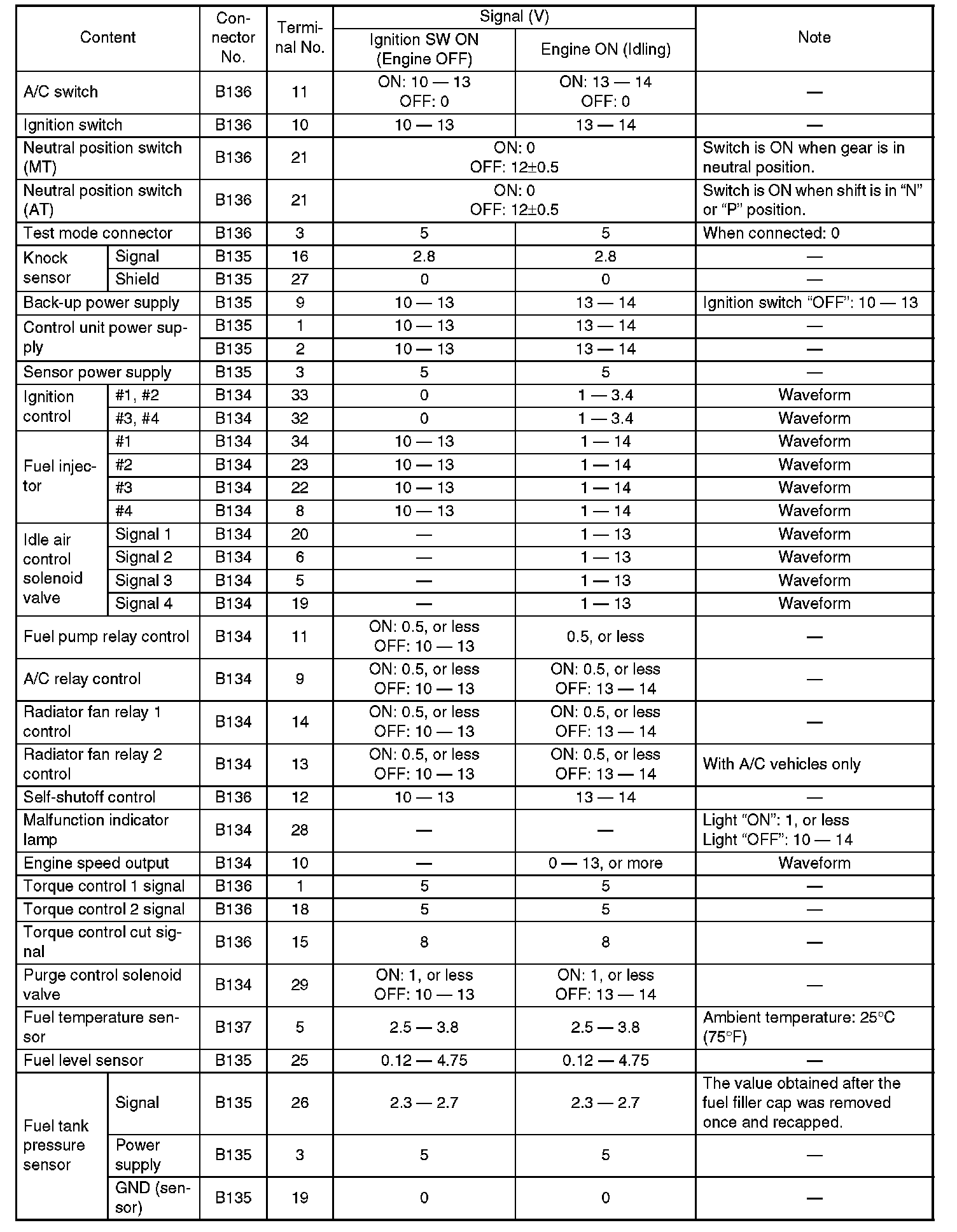 Engine Control Module (ECM) I/O Signal (Part 2):