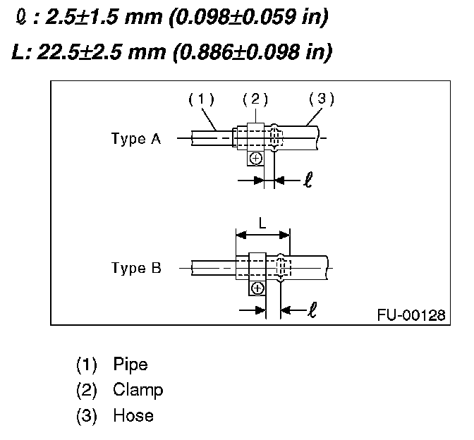 2. Connect fuel delivery hose to pipe with an overlap of 20 to 25 mm (0.79 to 0.98 in).