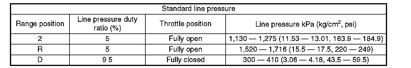 2. Measure the line pressure when select lever is in R, 2 with engine under stall conditions.