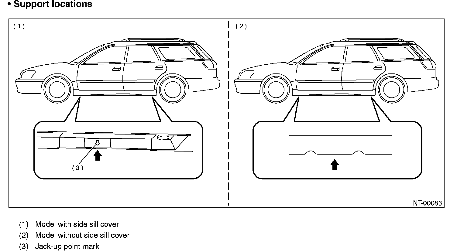 When using a lift or jack-ridged rack to raise a vehicle, always follow instructions concerning jack-up points and weight limits to prevent the vehicle from falling, which could result in injury. Be especially careful to make sure the vehicle is balanced before raising it.