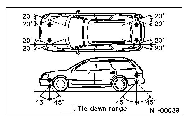 Attach tie-downs only to the specified points on the vehicle.