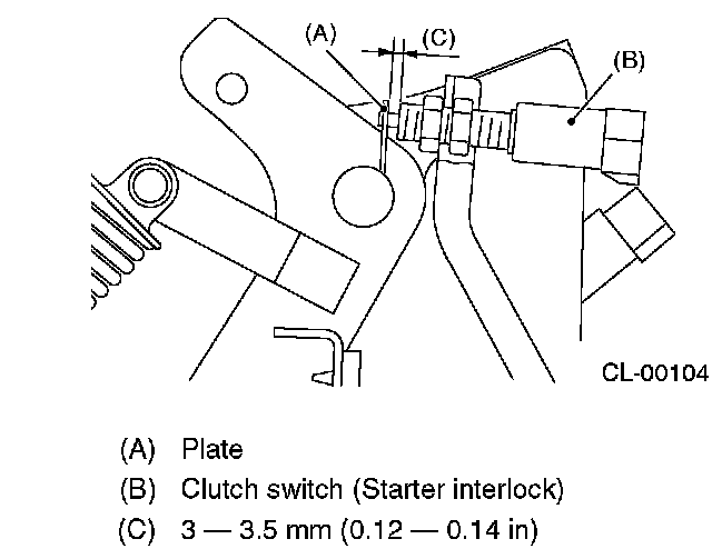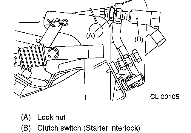 1. Loosen the clutch switch mounting lock nut (Starter interlock).