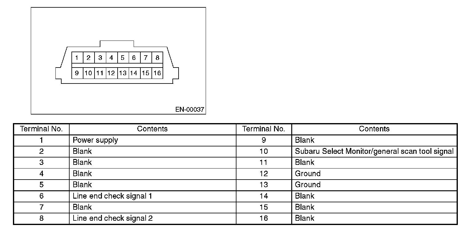 Data Link ConnectorNOTE: This connector is used both for the general scan tools and Subaru Select Monitor.