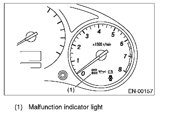 ACTIVATION OF MALFUNCTION INDICATOR LIGHT1. When the ignition switch is turned to ON (engine off), the malfunction indicator light in the combination meter illuminates.