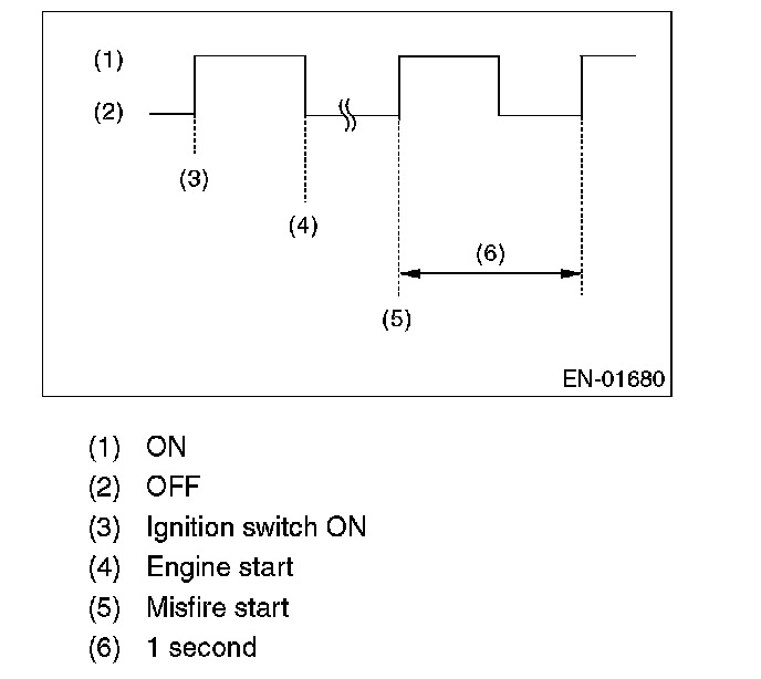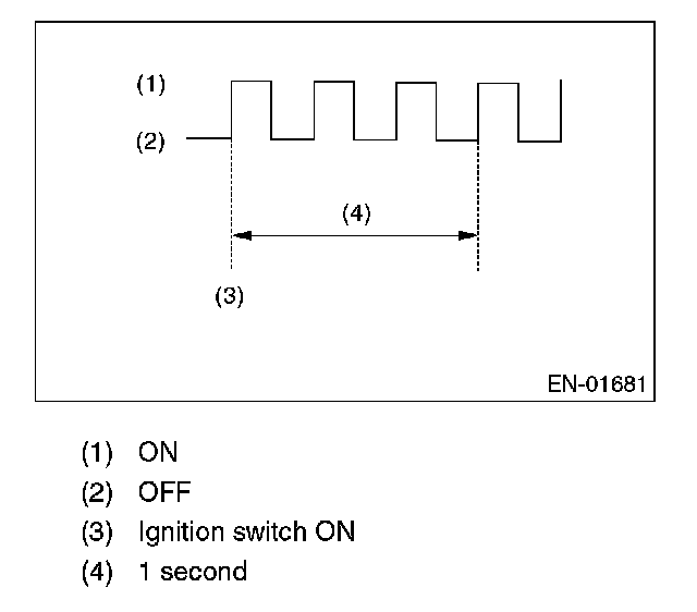 4. When the ignition switch is turned to ON (engine off) or to START with the test mode connector connected, the malfunction indicator light blinks at a cycle of 3 Hz.