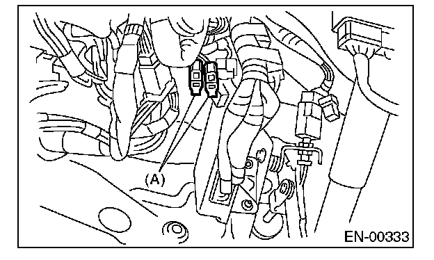 4. Connect the test mode connector (A) at the lower portion of instrument panel (on the driver's side).