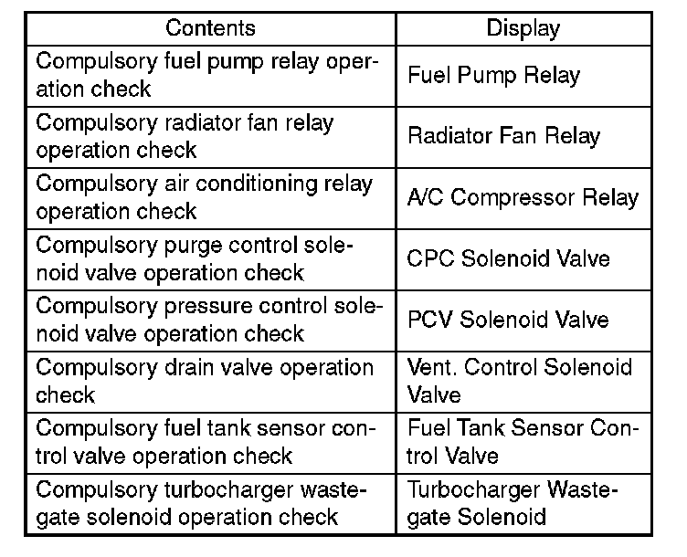 13. Pressing the [NO] key completes the compulsory operation check mode. The display will then return to the Actuator ON/OFF Operation screen.