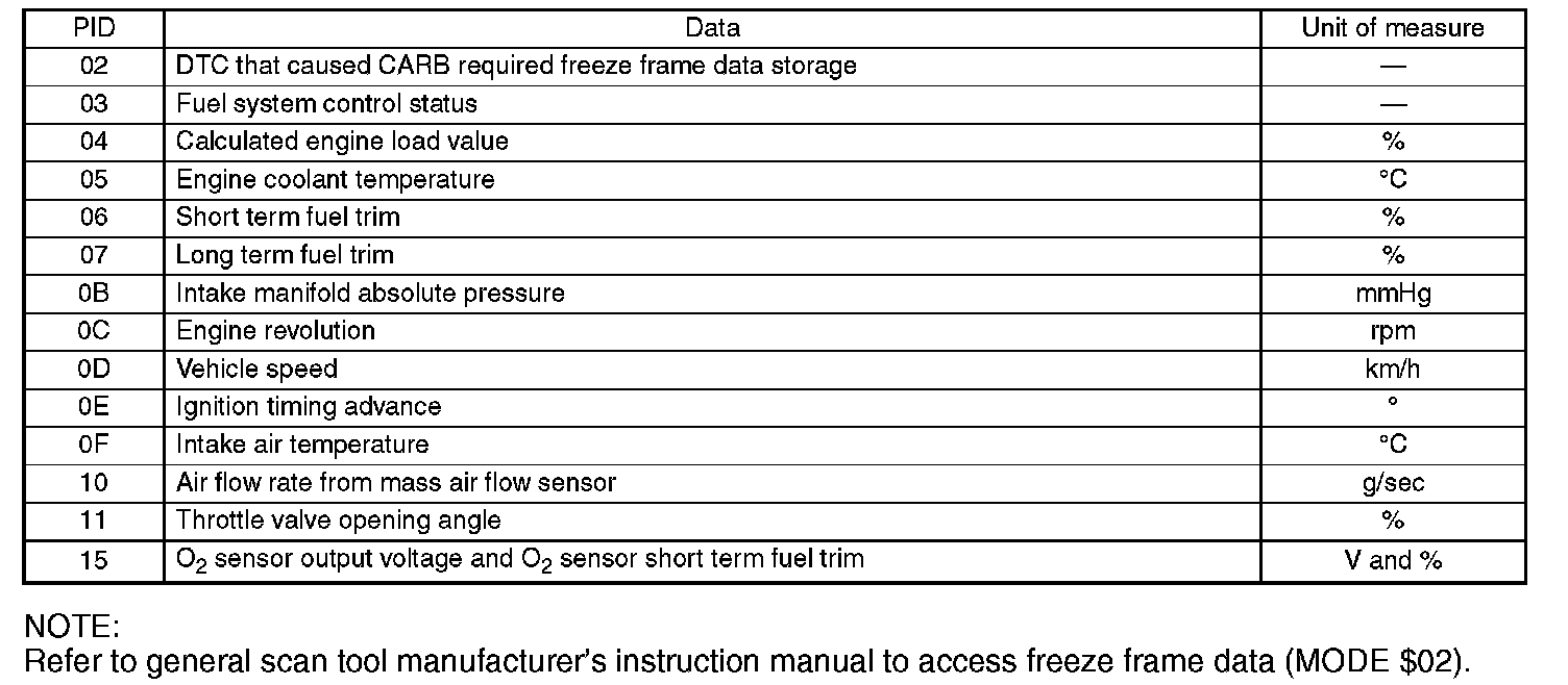 3. MODE $02 (POWERTRAIN FREEZE FRAME DATA)