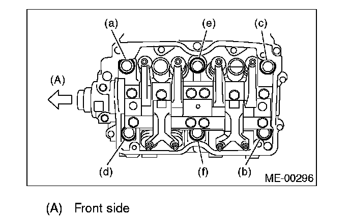 NOTE: Leave bolts (a) and (c) engaged by three or four threads to prevent the cylinder head from falling.