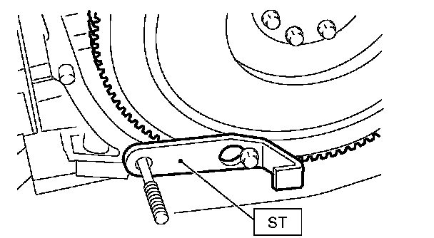 b) Using ST1, turn the crankshaft so that #1 and #2 connecting rods are set at bottom dead center.