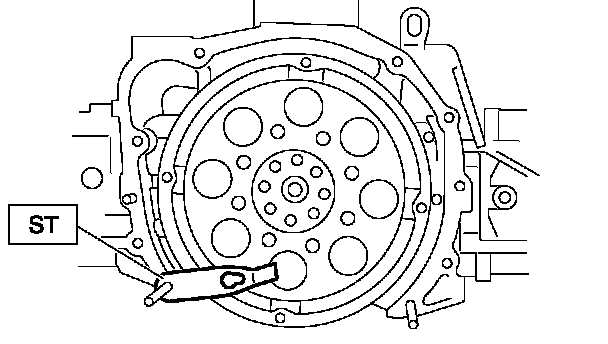 16) Remove the flywheel (MT model) or drive plate (AT model).