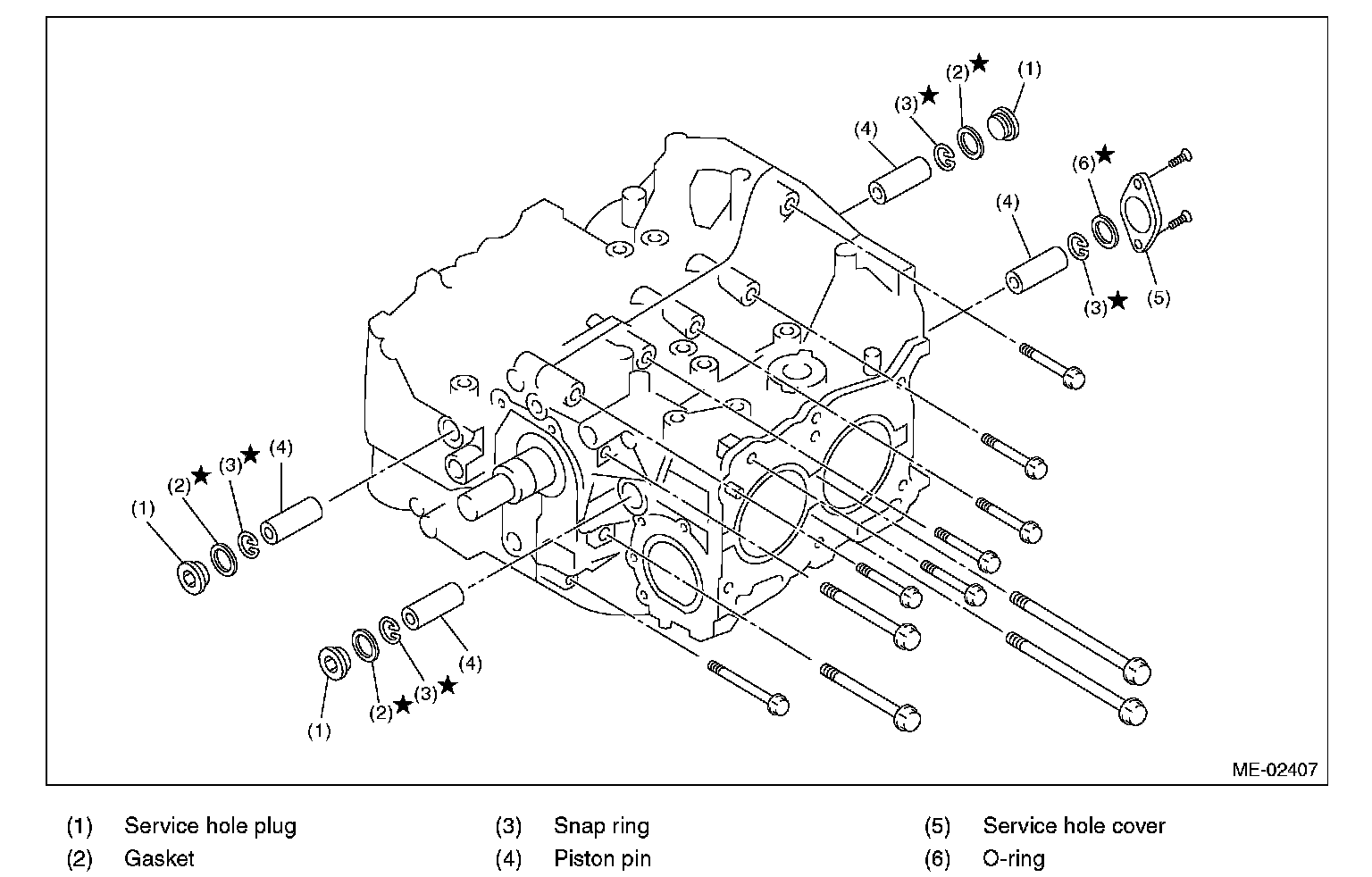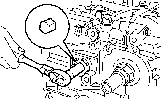 27) Remove the service hole cover and service hole plugs using a hexagon wrench (14 mm).