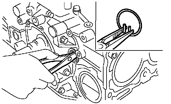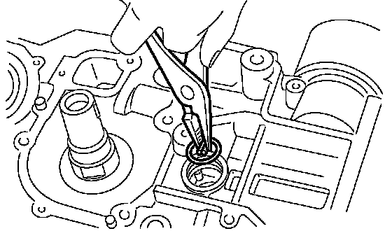 20) Remove the oil pump from cylinder block. Use a flat tip screwdriver as shown in the figure when removing the oil pump.