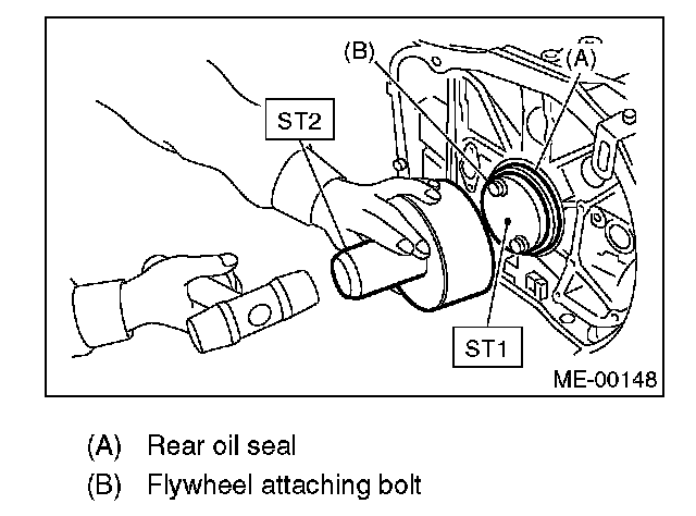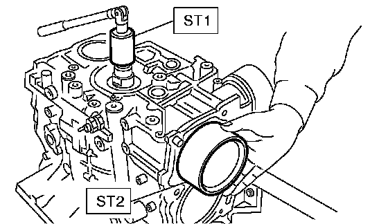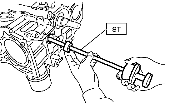 a) Discard the front oil seal after removal. Replace with a new one using ST.