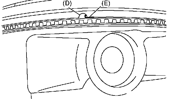 15) Align the upper rail spin stopper (E) to the side hole (D) on the piston.