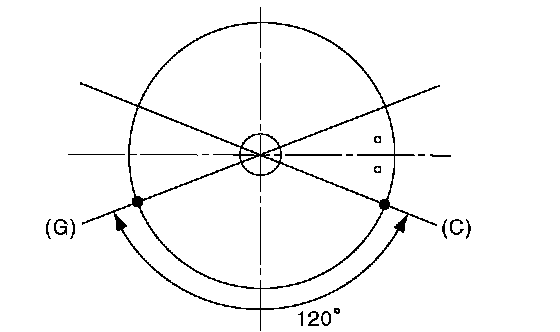 17) Position the lower rail gap at 120° on counterclockwise of (c) that shown (G) in the figure.