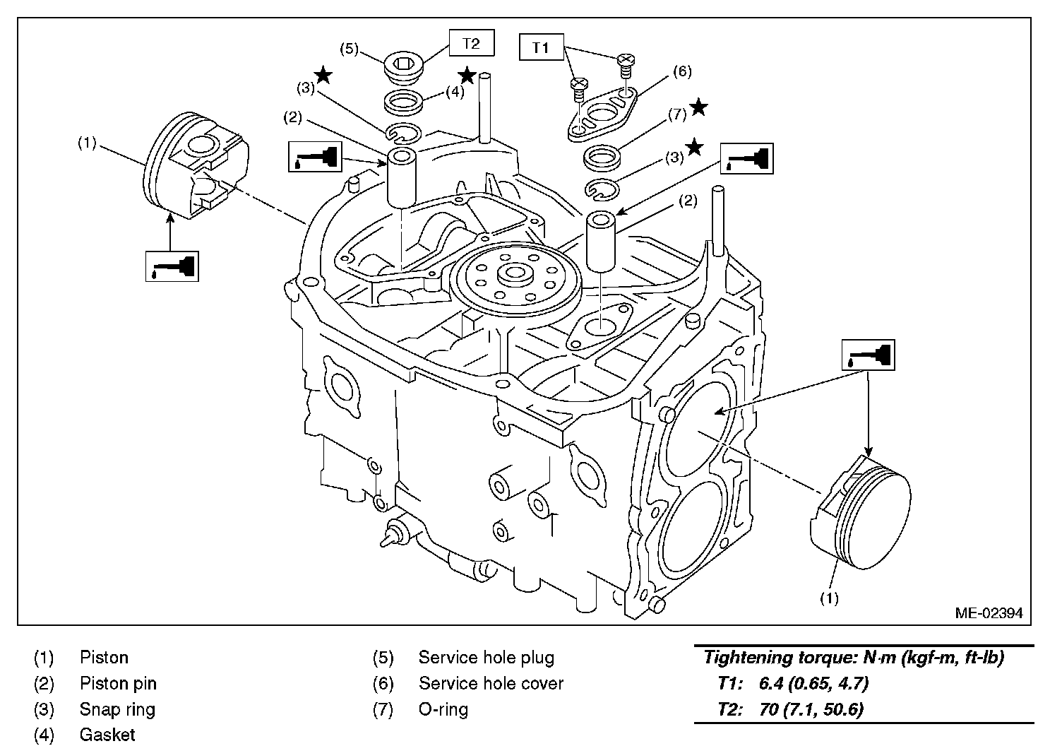 T: 6.4 Nm (0.65 kgf-m, 4.7 ft. lbs.)