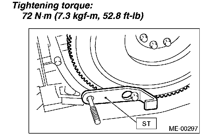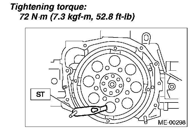 Tightening torque: 72 Nm (7.3 kgf-m, 52.8 ft. lbs.)