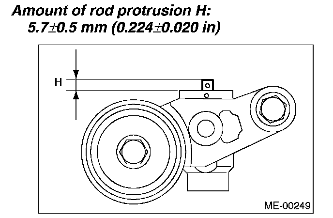 1) Check the mating surfaces of timing belt and contact point of adjuster rod for abnormal wear or scratches. Replace the automatic belt tension adjuster assembly if faulty.