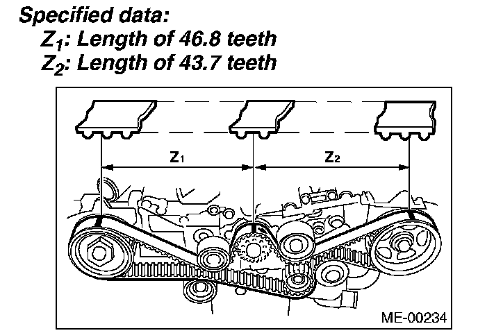 1) Check the timing belt teeth for breaks, cracks and wear. If any fault is found, replace the belt.