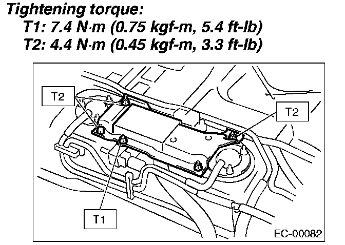 5. Remove the nuts and bolts which install the fuel tank pressure sensor on bracket.