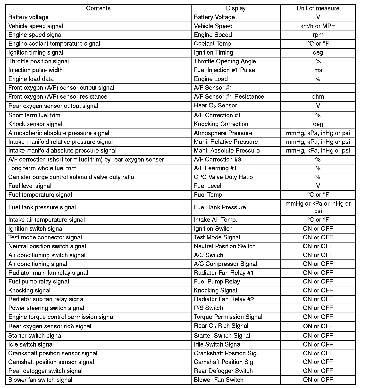 5. READ CURRENT DATA FOR ENGINE (OBD MODE)