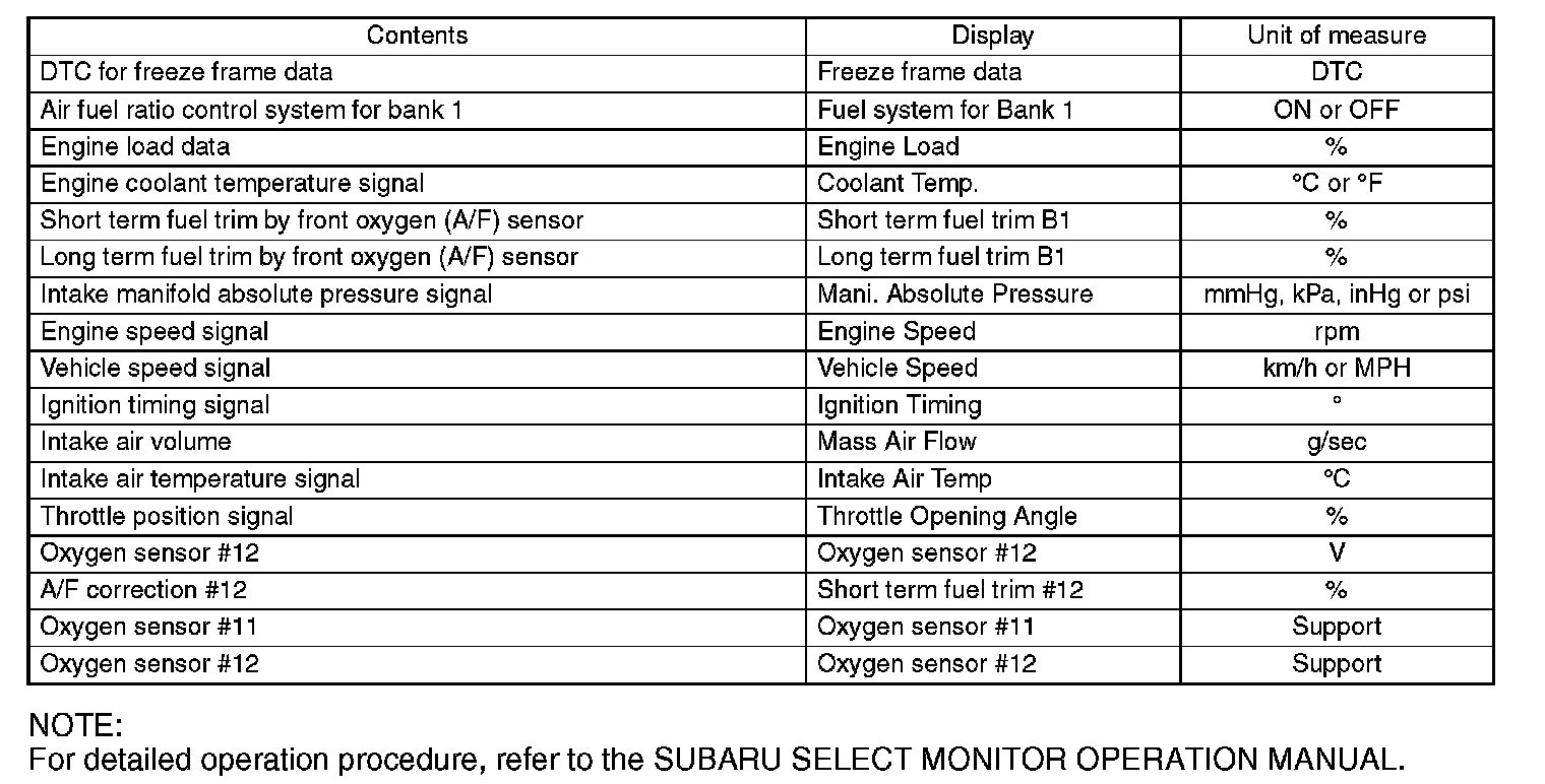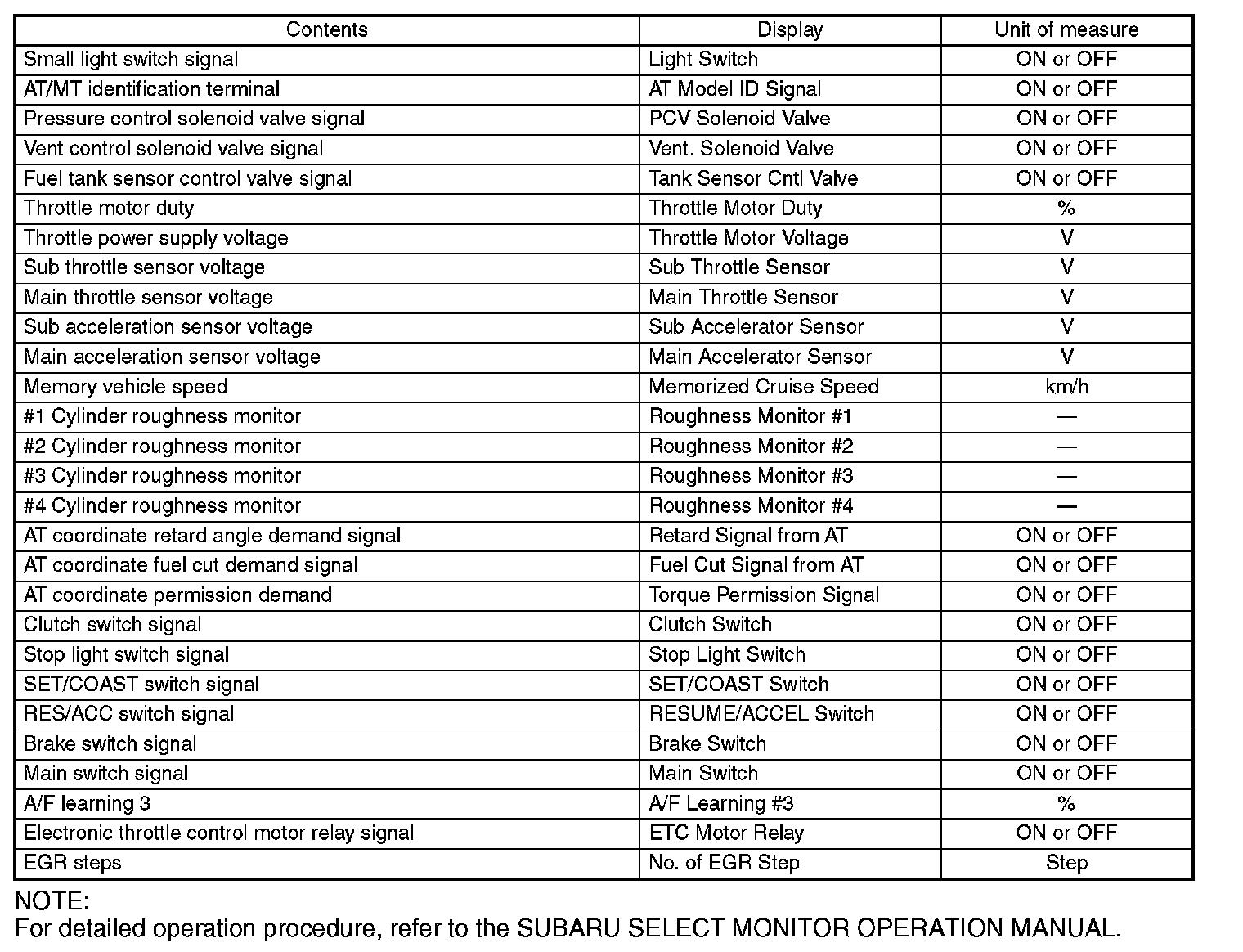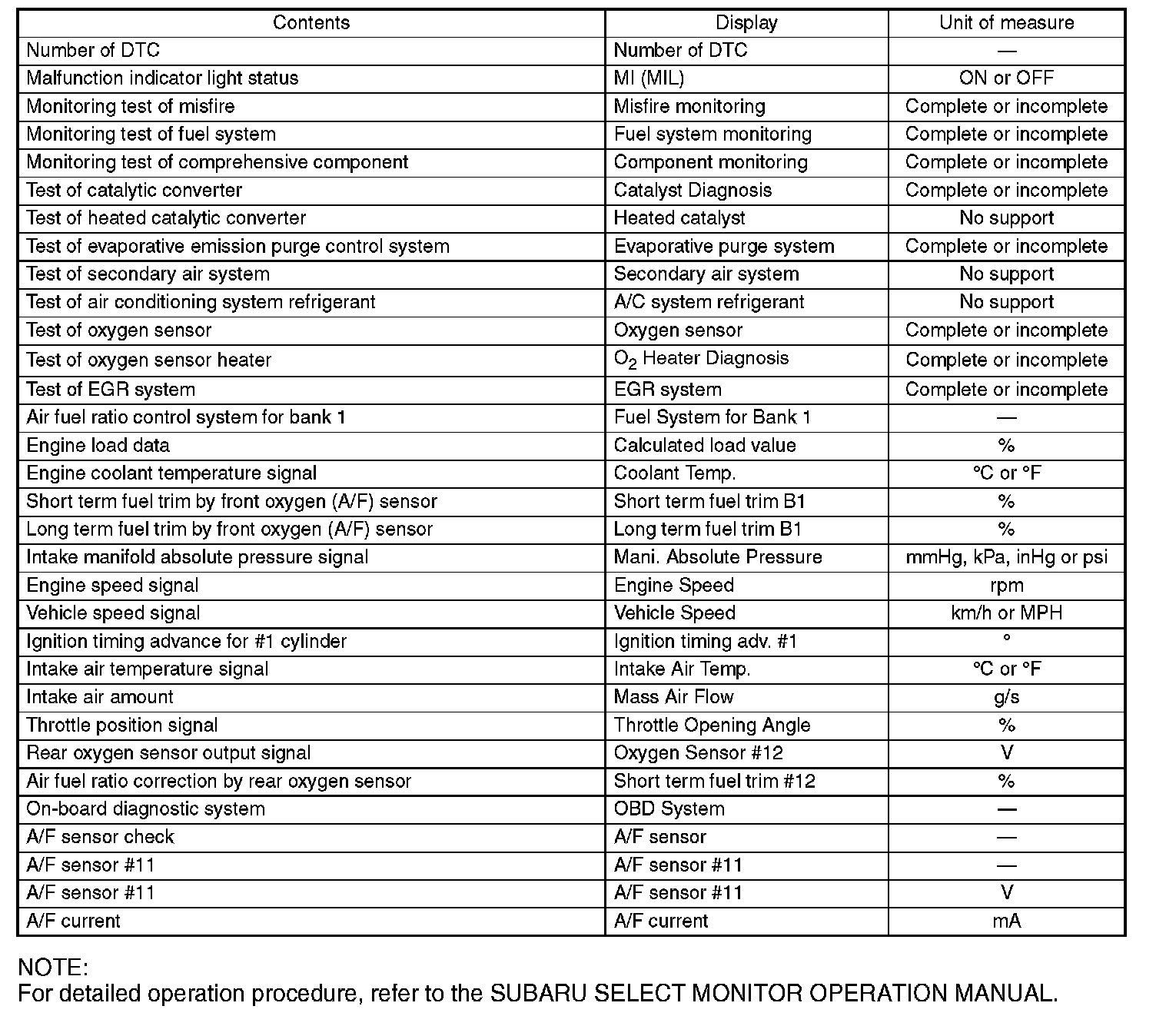 NOTE: For detailed operation procedure, refer to the SUBARU SELECT MONITOR OPERATION MANUAL.