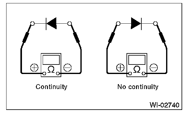 2. Use an ohmmeter to check for the diode continuity. When contacting the negative lead to diode positive side and positive lead to negative side, there should be continuity. When contacting the two leads in reverse, there should be no continuity.