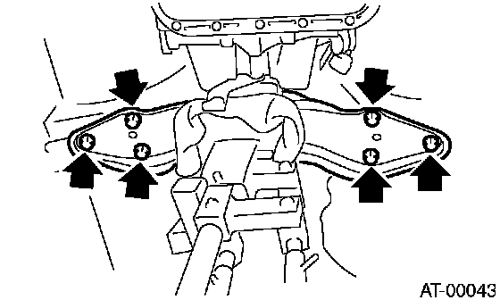 NOTE: Make sure that the support plates of transmission jack don't touch the oil pan.