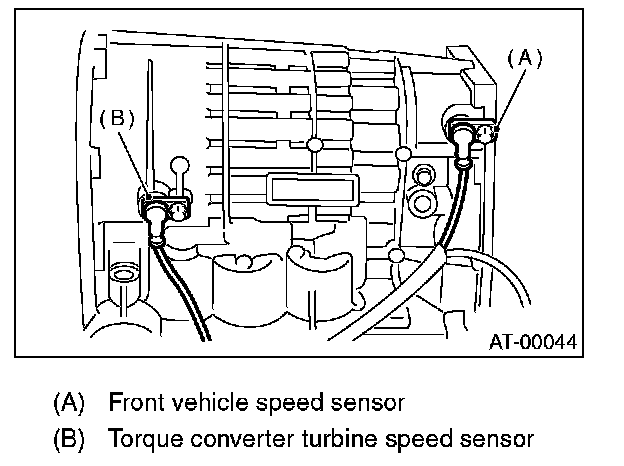 19. Remove the front and rear vehicle speed sensor and torque converter turbine speed sensor.
