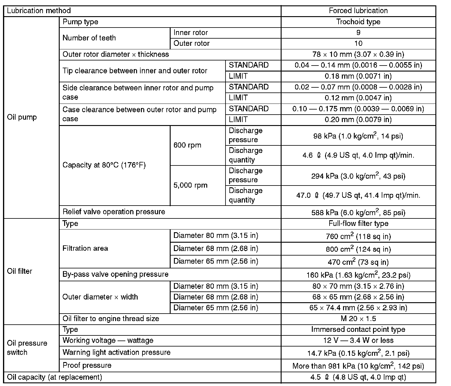 NOTE: If the vehicle is used in areas with very high temperatures or for other heavy duty applications, the following viscosity oils may be used: API standard: SL or SJ or SH