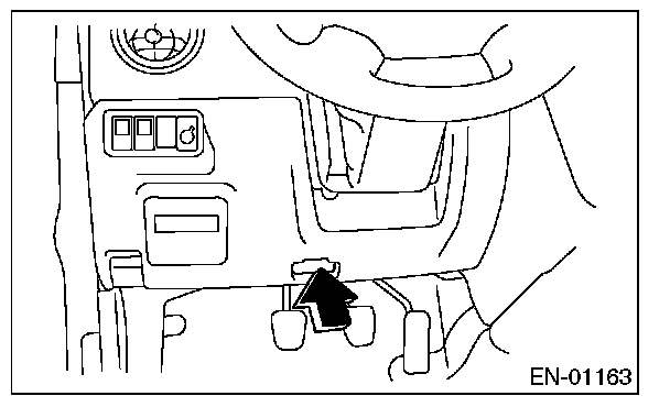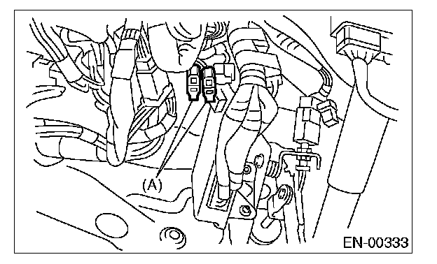 4. Connect the test mode connector (A) at the lower portion of instrument panel (on the driver's side).