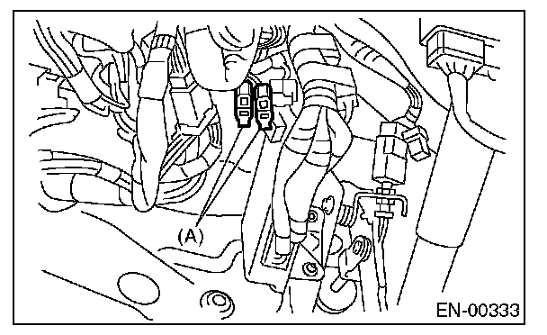 6. Connect the test mode connector (A) at the lower portion of instrument panel (on the driver's side).