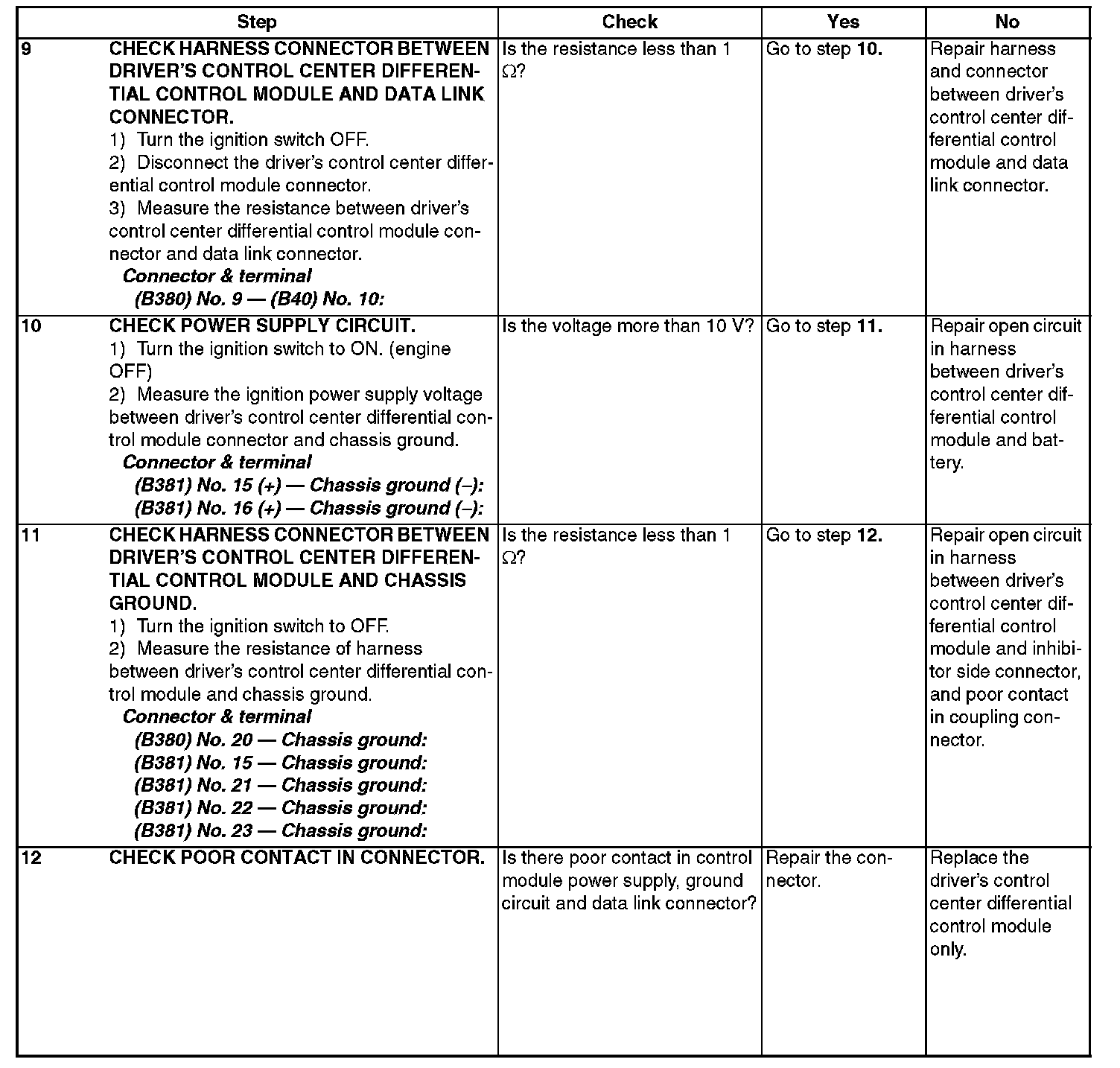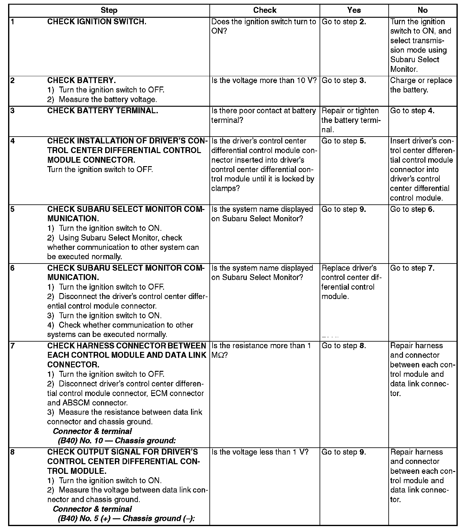 Communication is impossible between driver's control center differential control module and Subaru Select Monitor.