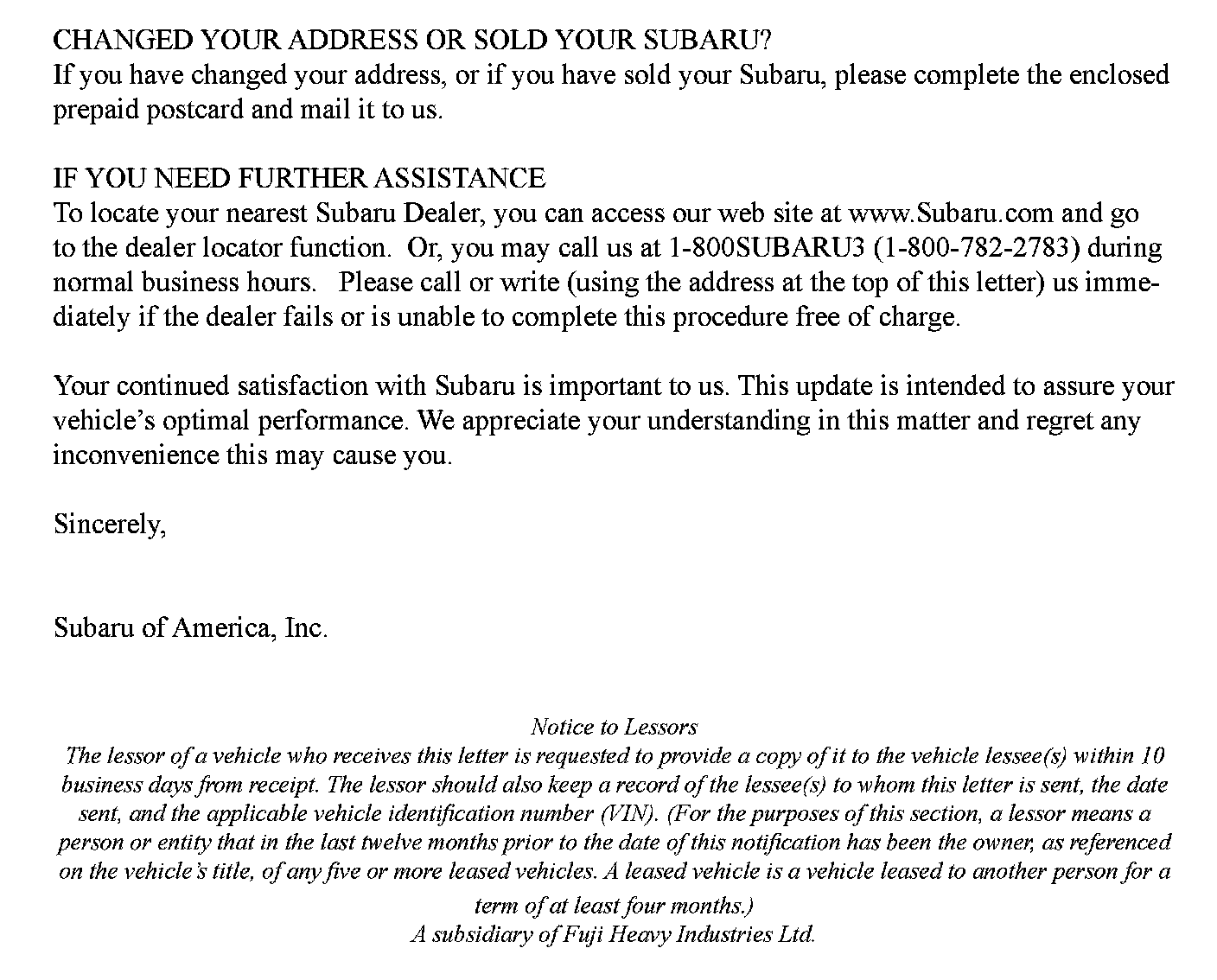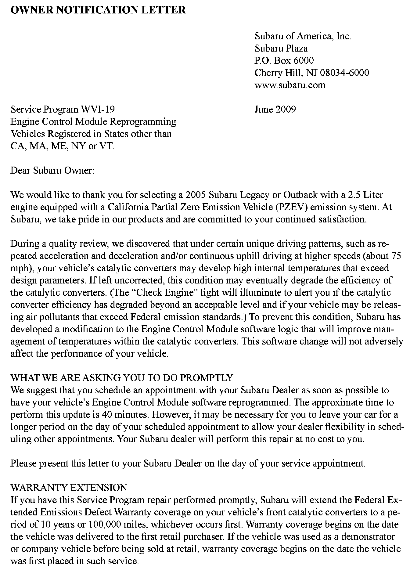 Recall - ECM Update For Catalyst Efficiency (Ca. Spec.)