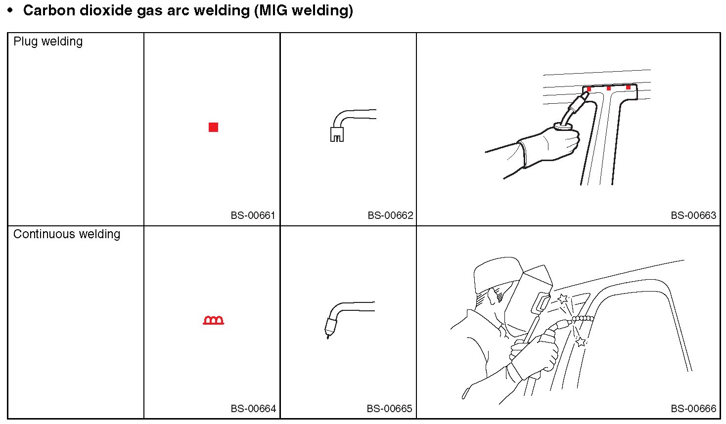 - Always apply anticorrosion wax to the welding locations when replacing panels.