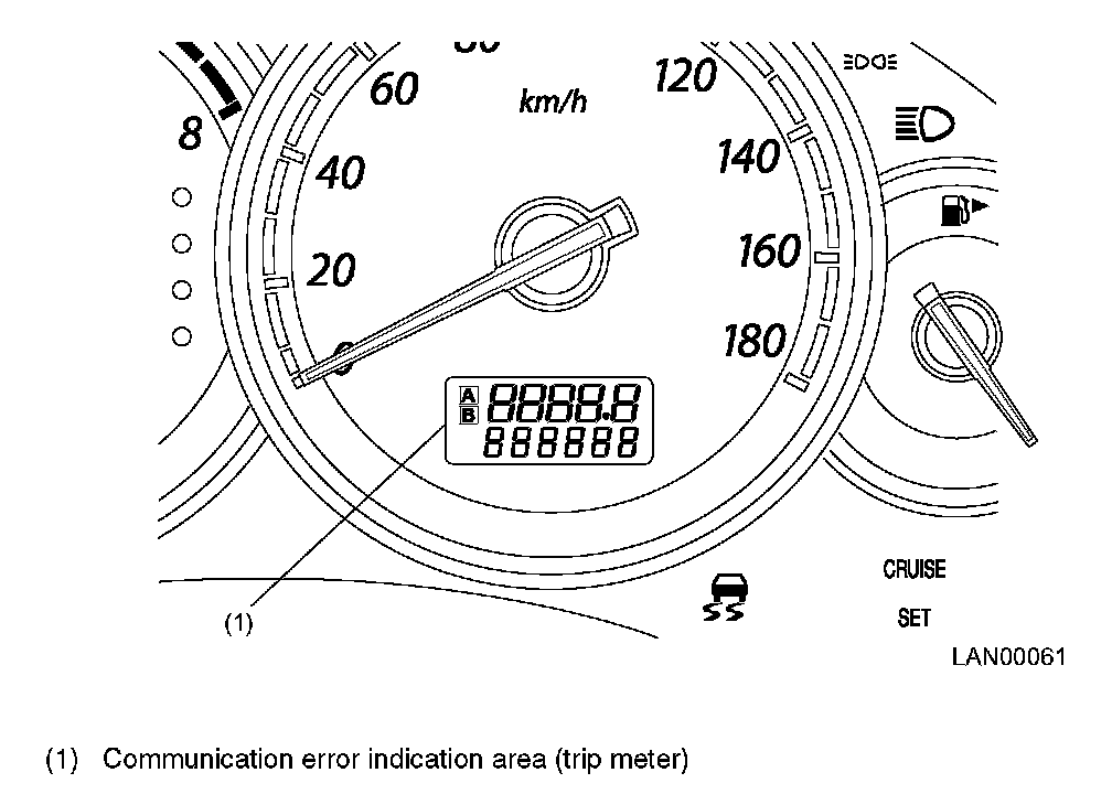 COMMUNICATION ERROR INDICATIONS- If a fault occurs in the body integrated unit or LAN system (in any unit or the communication circuit), a communication error indication is given at the trip information display area on the combination meter.