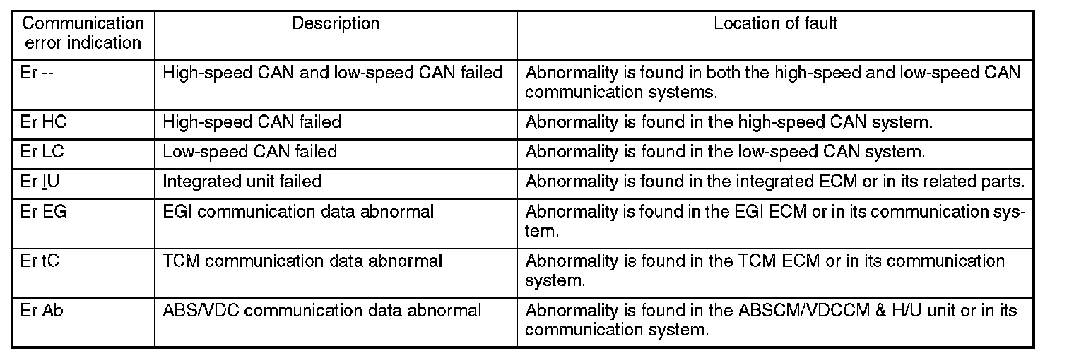 - If more than one diagnostic trouble code is stored, indication is given in the following order of priority: (1) High-speed CAN (2) Low-speed CAN (3) integrated unit (4) EGI (5) TCM (6) VDC