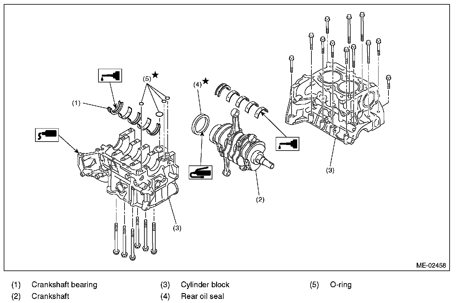 1. Remove oil on the mating surface of bearing and cylinder block before installation. Apply a coat of engine oil to crankshaft pins.