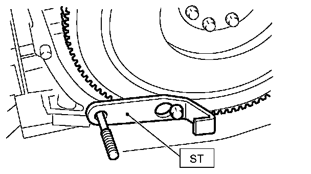 12. Remove the drive plate. (AT model) To lock crankshaft, use ST.