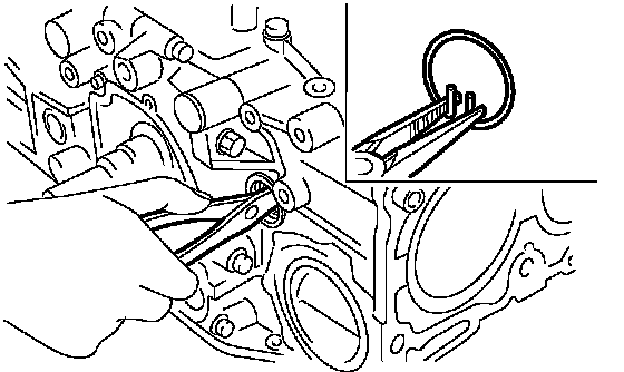 19. Install the snap ring. Install snap rings in the piston holes located opposite to the service holes in cylinder block, when positioning all pistons in the corresponding cylinders.