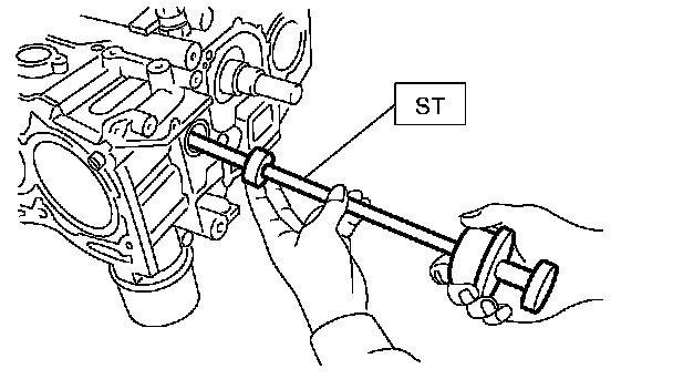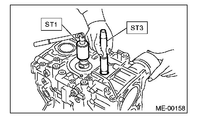 1 Apply a coat of engine oil to ST3 before insertion, and then insert it into the service hole to align piston pin hole with connecting rod small end.