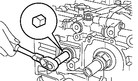 25. Remove the service hole cover and service hole plugs using a hexagon wrench [14 mm].
