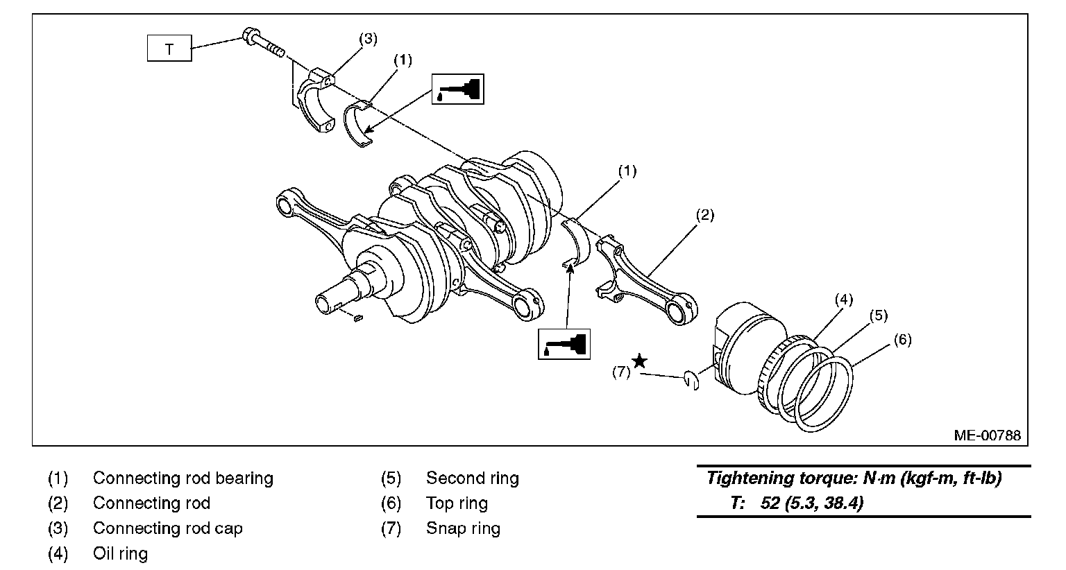 NOTE: Arrange the removed connecting rod, connecting rod cap and bearing in order to prevent confusion.