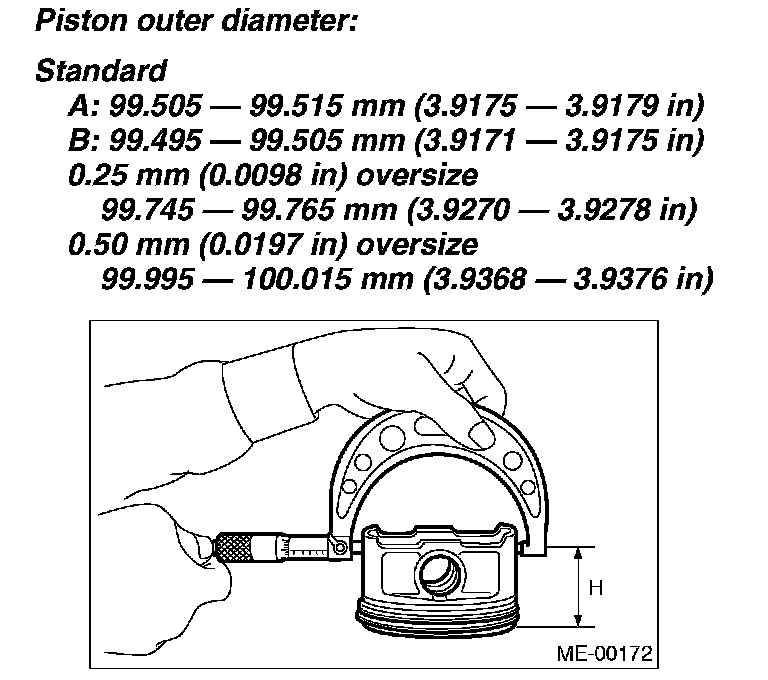 3. When the piston is to be replaced due to general or cylinder wear, determine a suitable sized piston by measuring the piston clearance.